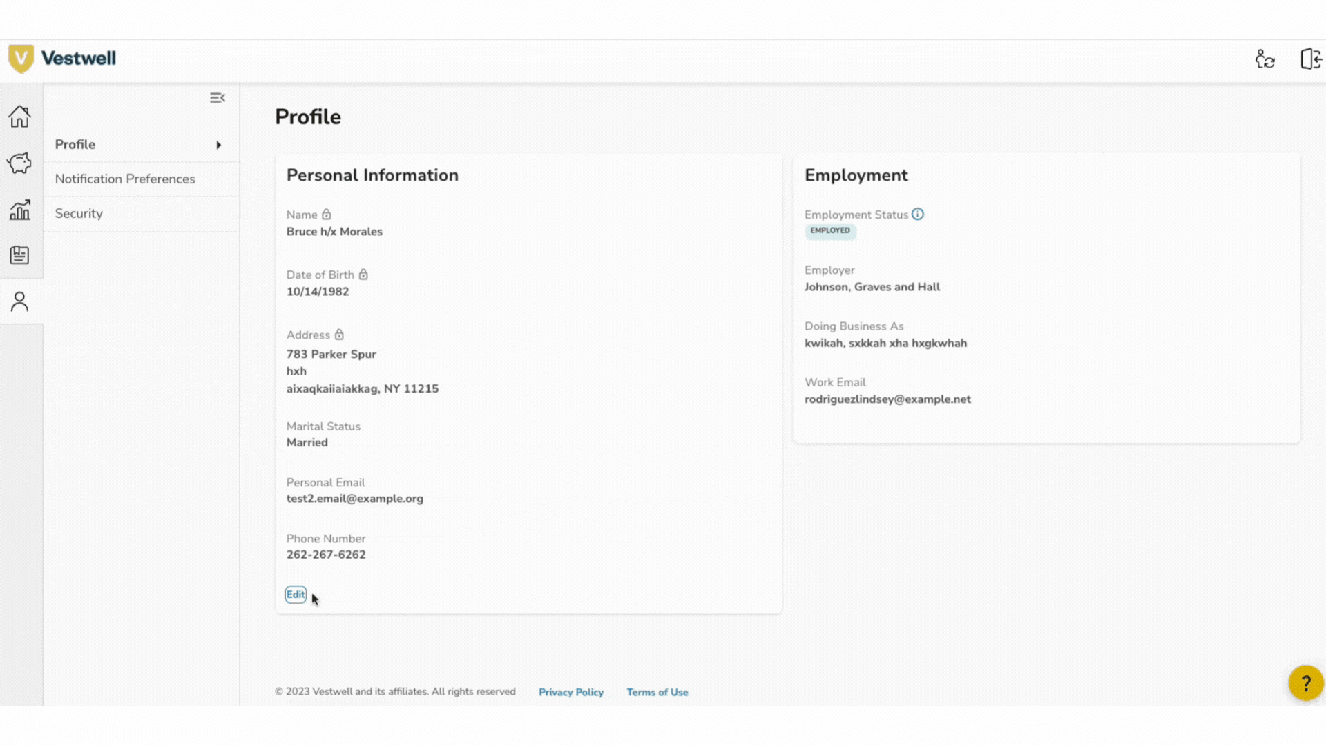 - To edit your personal information, log in to your J.P. Morgan account: https://jpmorgan.vestwell.com/.